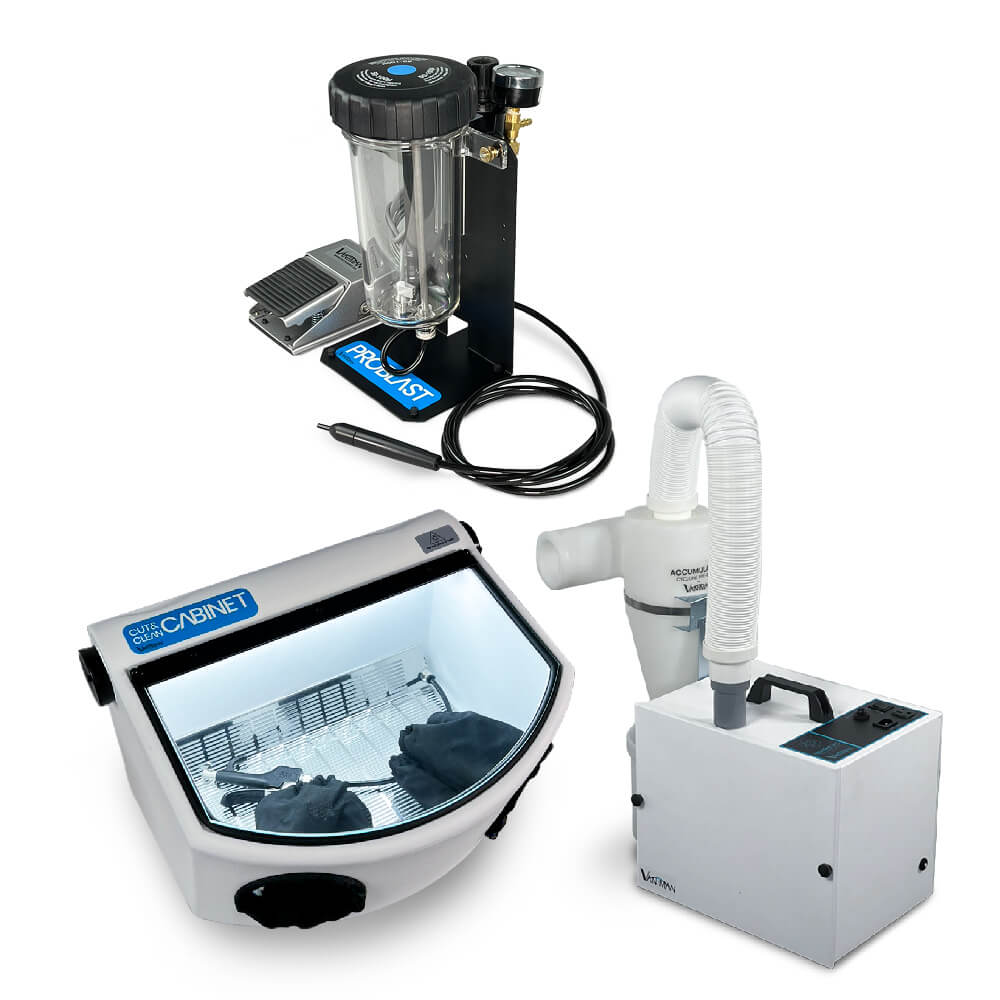 - Accumulator pre-filter captures 95% of all dust and 99% of all abrasive media