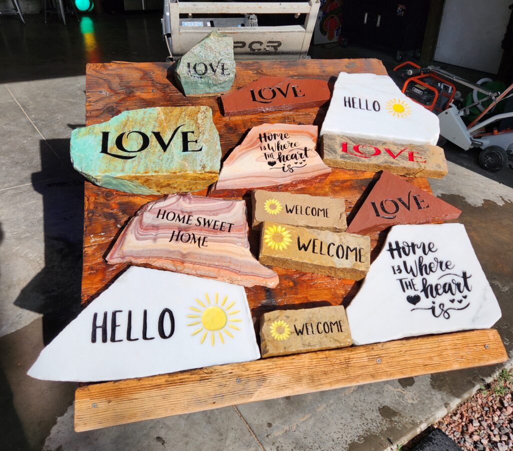 He does work from individuals (memorials) to businesses of all sizes (signage) and even some sizeable organizations (including the Veterans Memorial Wall in Fremont County, Colorado).