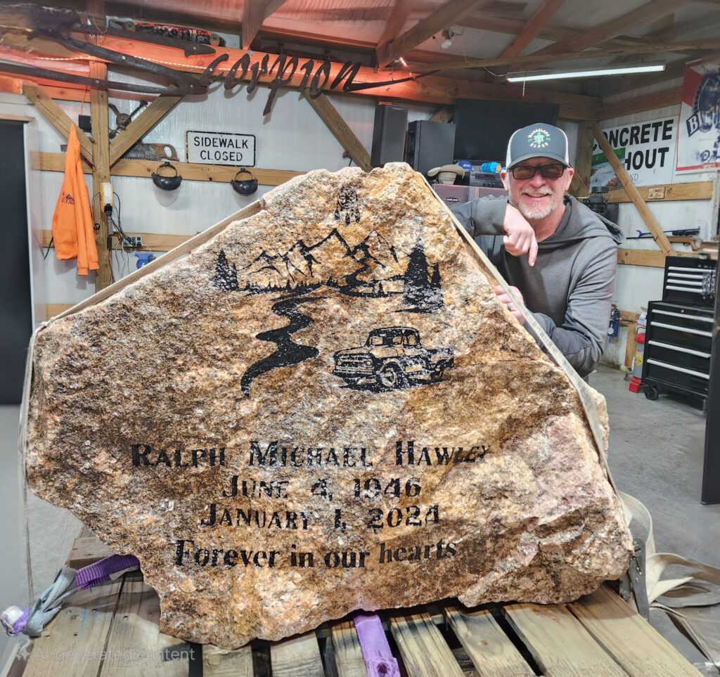 But what really sets Mark in a league of his own is his engraving work. He engraves on concrete and large boulders, and you don’t often see the perfected detail he’s able to achieve. It really is something!